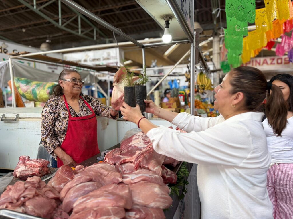 La titular del Bienestar llegó al mercado La Acocota para dialogar con los locatarios, escuchar sus necesidades, reclamos y para regalar arbolitos.